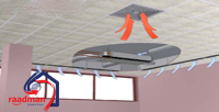 فن کویل ها یکی از راه های مختلف توزیع هوا در اتاق می باشد. به این دلیل که می توان آن را با تمام دریچه ها و دیفیوزرهای داخلی ساختمان مطابقت داد. آنها همچنین می توانند اتاق ها را توسط کانال های هوای جداگانه تهویه کنند یعنی یک واحد جهت انتشار در منطقه ای بزرگ. برای آگاهی از بهترین شرایط هوایی داخل، دانستن چند قانون ضروری است. اول اینکه سرعت پرتاب هوا در خروجی کانال کمتر از m/s 3 باشد و دوم دمای هوا بالاتر از 11درجه سلسیوس بوده و دریچه ها با حجم هوای اتاق مطابقت داشته باشد. شمایی از توزیع هوا در اتاق در شکل مقابل نشان داده شده است.